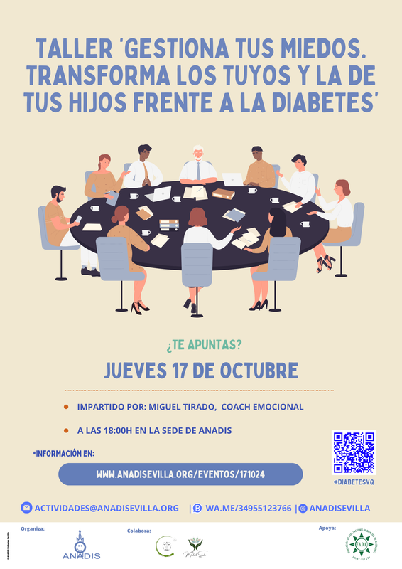 El próximo jueves 17 de octubre, la sede de ANADIS acogerá la primera charla-taller del nuevo curso. En esta ocasión será destinada para padres y madres con hijos con diabetes para tratar los miedos y las emociones que se pueden llegar a tener frente a la diabetes.
